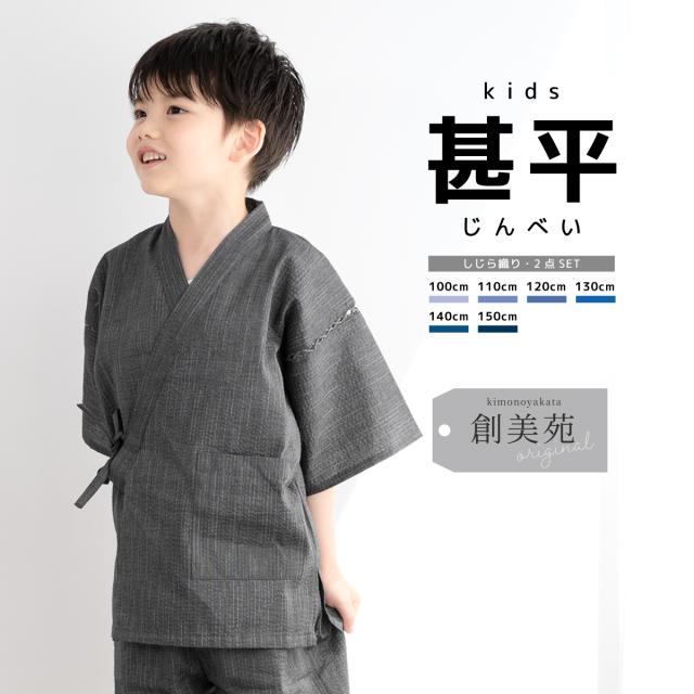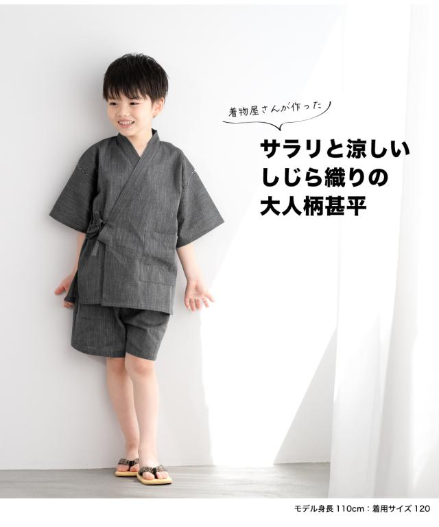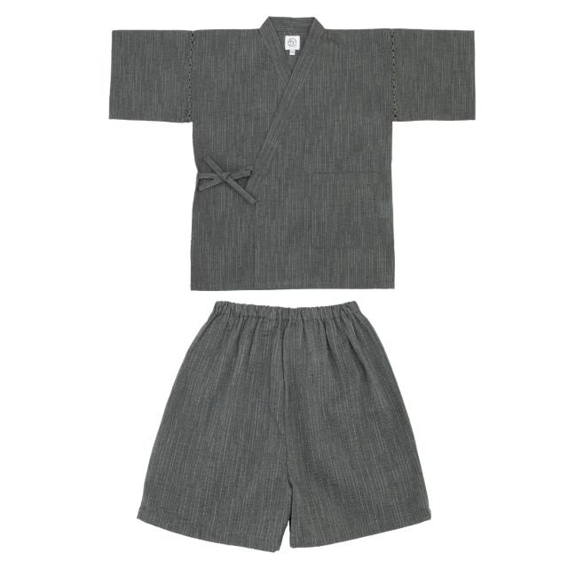 甚平 男の子 おしゃれ 子ども 男児 キッズ甚平 SOUBIENオリジナル しじら織 濃灰色 濃グレー 縞 ストライプ 夏 和装 メール便 送料無料