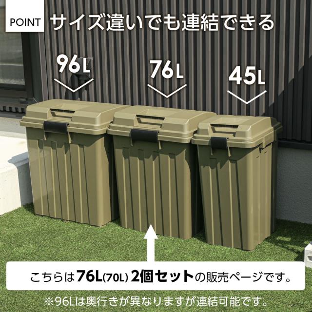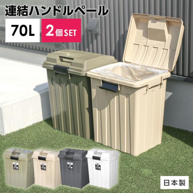 屋外ゴミ箱 連結ハンドルペール70 2個セット | ごみ箱 おしゃれ 70L 76L カーキ 白 ホワイト 黒 ブラック 分別 ハンドル ゴミ箱 70リットル 外置き ダストボックス