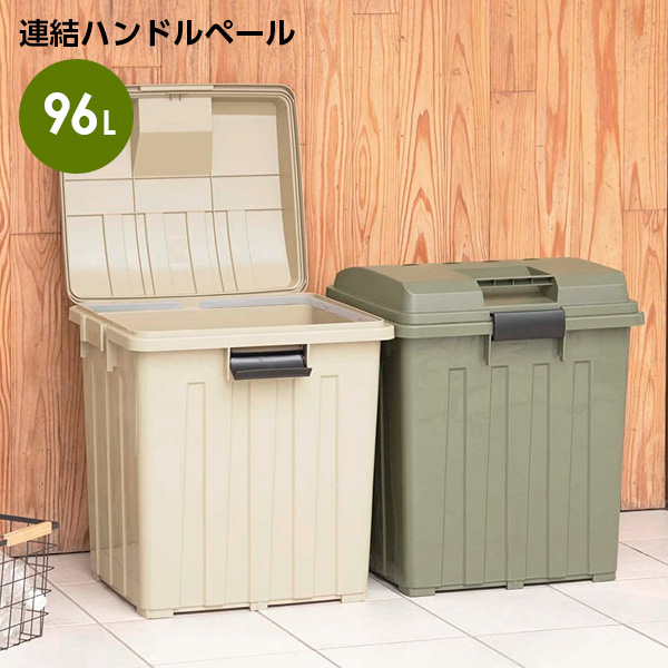 ごみ箱 連結ハンドルペール90 カーキベージュ / カーキグリーン | 屋外 おしゃれ 90L 96L カーキ 分別 ハンドル ゴミ箱 90リットル 外置き ダストボックス