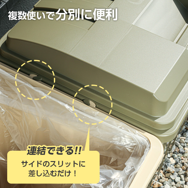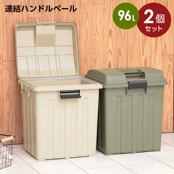 ごみ箱 連結ハンドルペール90 2個セット カーキベージュ / カーキグリーン | 屋外 おしゃれ 90L 96L カーキ 分別 ハンドル ゴミ箱 90リットル 外置き ダストボックス