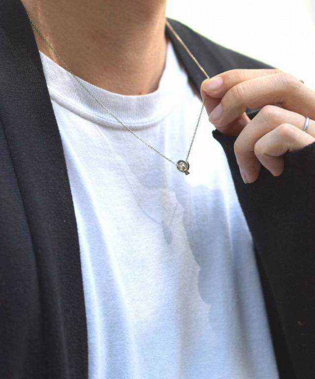 小ぶりながらも厚みはしっかり持たせているメンズライクなWリングネックレス。