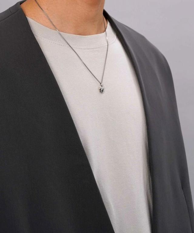 岩肌のような面を持つ、オーバルタイプのネックレス。
