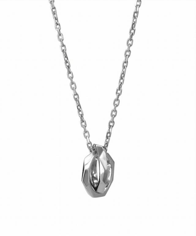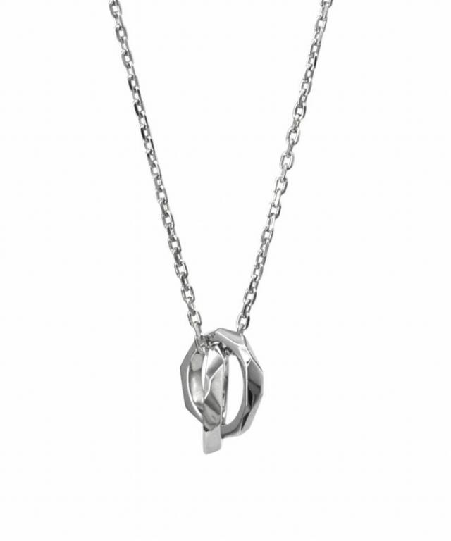 岩肌のように角の立った多面体が特徴のダブルリングネックレス。