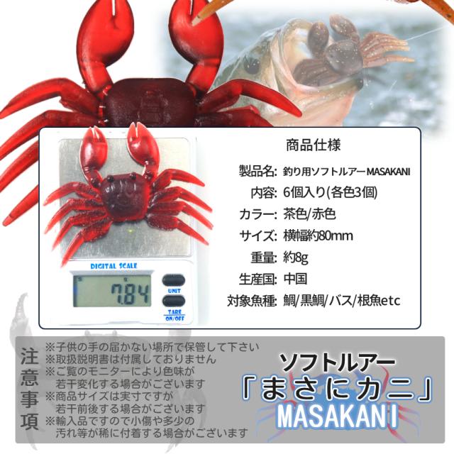 カニ ワーム ソフト ルアー 蟹 赤 茶 2色 各3体 6体セット 釣り 海水 ソルト ウォーター 対応 疑似餌 クラブ かに フィッシング タコ バス チヌ 鯛 ナマズ 投げ 海釣り MASAKANI 送料無料