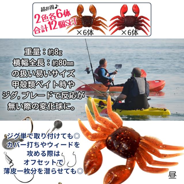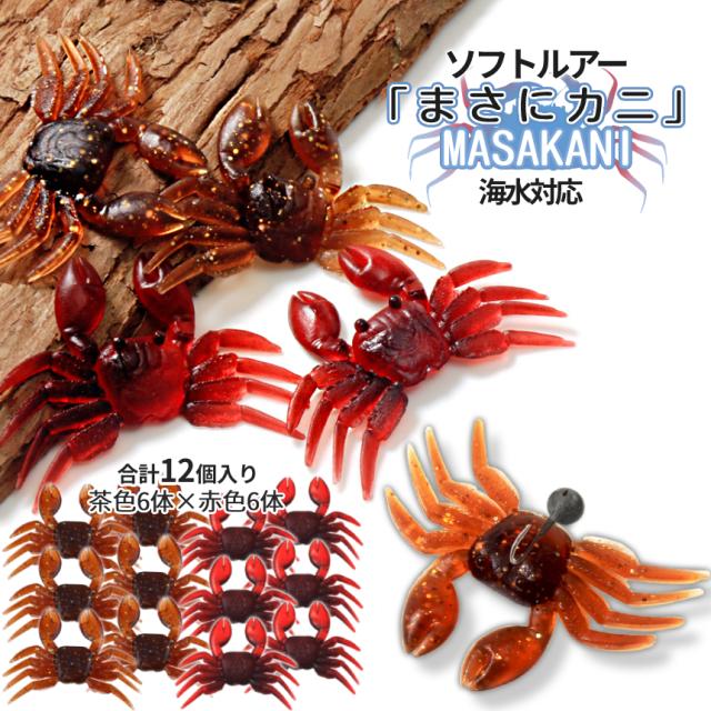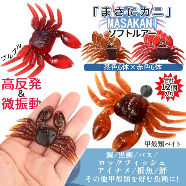 カニ ワーム ソフト ルアー 蟹 赤 茶 2色 各6体 12体セット 釣り 海水 ソルト ウォーター 対応 疑似餌 クラブ かに フィッシング タコ バス チヌ 鯛 ナマズ 投げ 海釣り 2-MASAKANI 送料無料