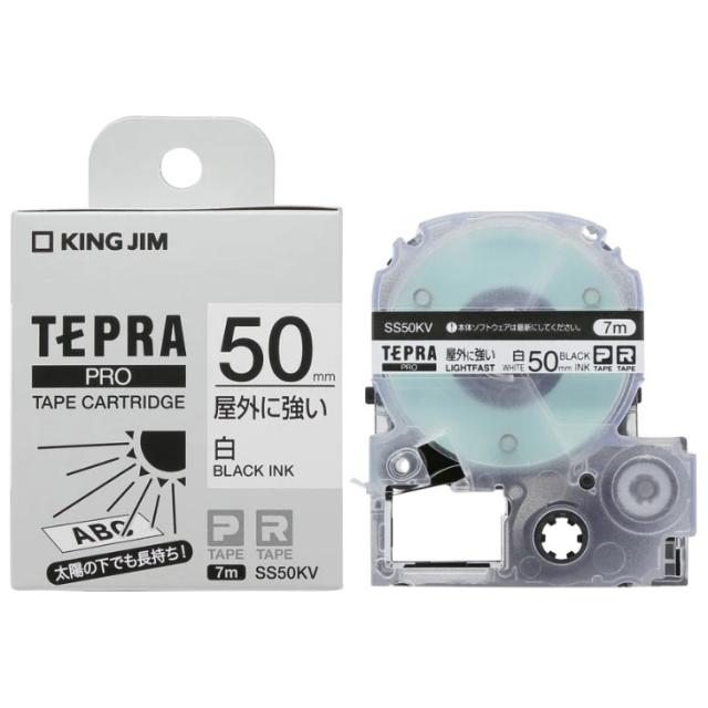 キングジム PROテープカートリッジ 屋外に強いラベル(50 幅/白テープ/黒文字) SS50KV返品種別A