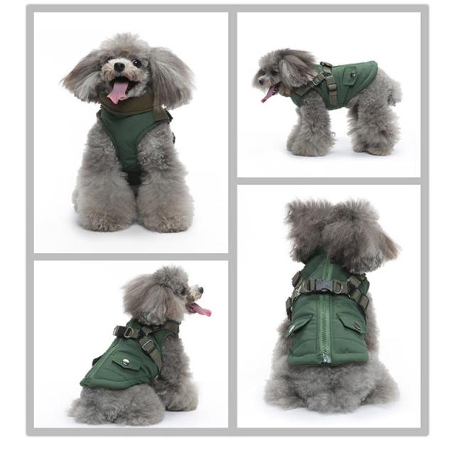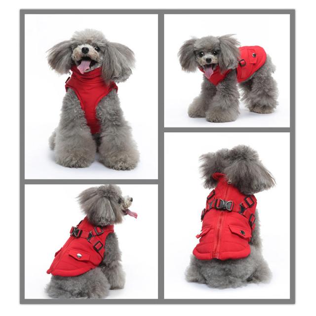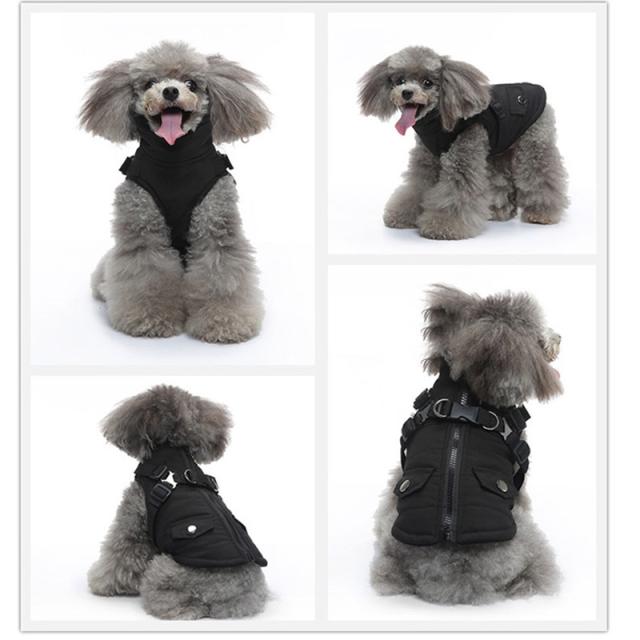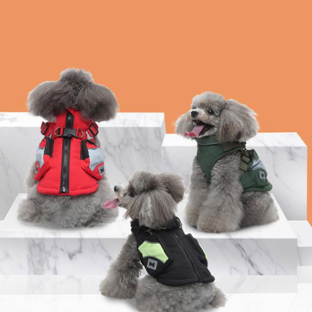 犬服 犬の服 犬用ベスト ダウン風ベスト 犬用アウター ペット服とハーネス一体 ドッグウェア 中綿 秋冬服 小型犬 中型犬 ジップ 敬老の日