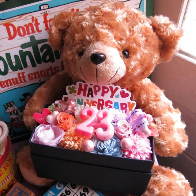 【誕生日プレゼント 彼女 23歳】 くま ぬいぐるみ ベアー ぬいぐるみ お祝い 記念日 数字23入り 花束風 フラワーギフト 箱を開けてサプライズ プリザーブドフラワー入り 横長ボックス