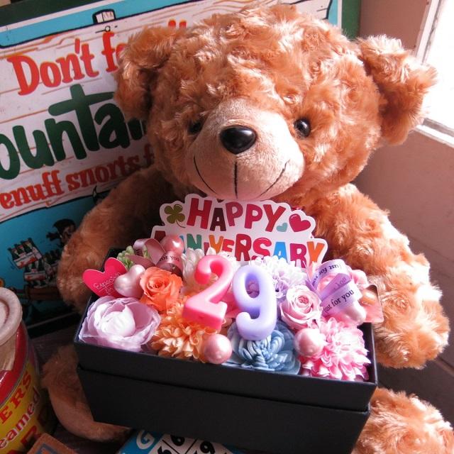 【誕生日プレゼント 彼女 29歳】 くま ぬいぐるみ ベアー ぬいぐるみ お祝い 記念日 数字29入り 花束風 フラワーギフト 箱を開けてサプライズ プリザーブドフラワー入り 横長ボックス