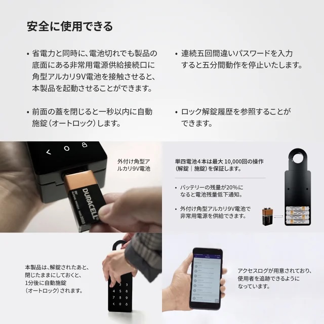 取付簡単で鍵の紛失、持ち忘れ、貴重品の管理ができる次世代のスマートキーボックス!