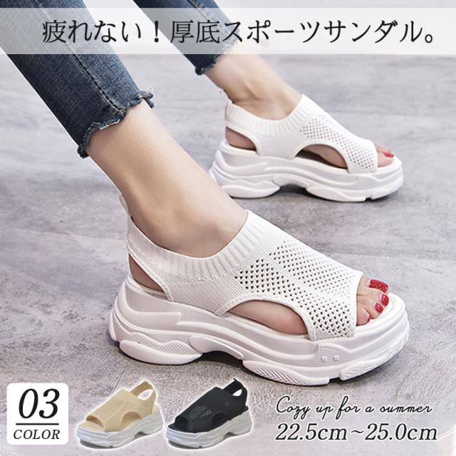 サンダル スポーツサンダル レディース シューズ 厚底サンダル ニット アウトドア ビーチサンダル 軽量 厚底 歩きやすい 靴 お