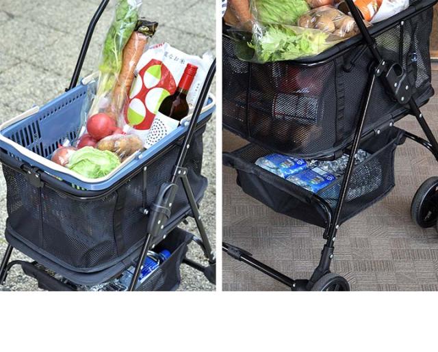 ショッピングカート ワンタッチ 折りたたみ 4輪 買い物カート 軽量 フットブレーキ付 レジカゴ バッグ 取り外し 2段 マイバッグ エコバッグ マイバスケット スーパー 高齢者 買い物かご バスケット レジバッグ キャリーカート 1年保証 送料無料