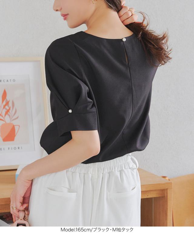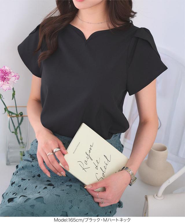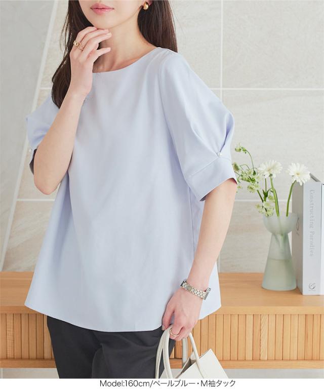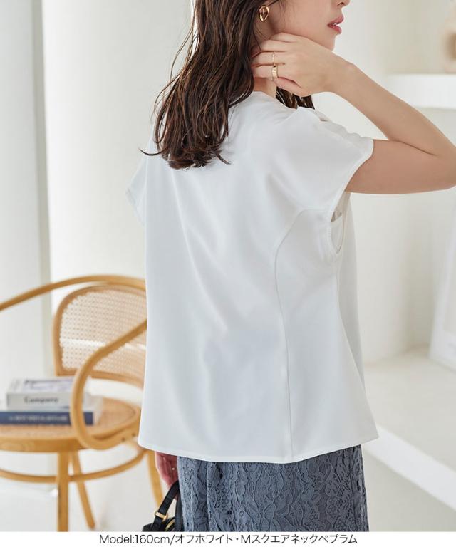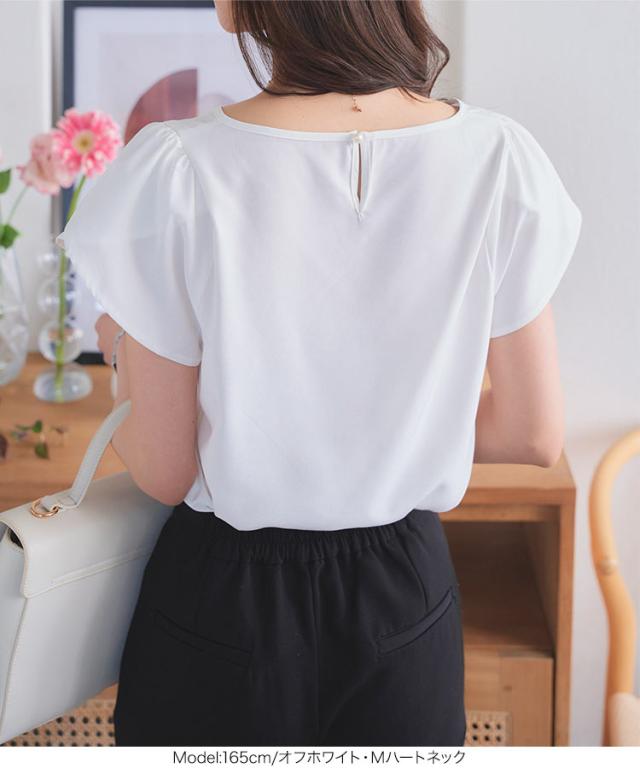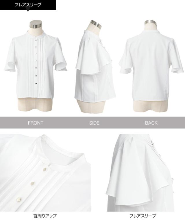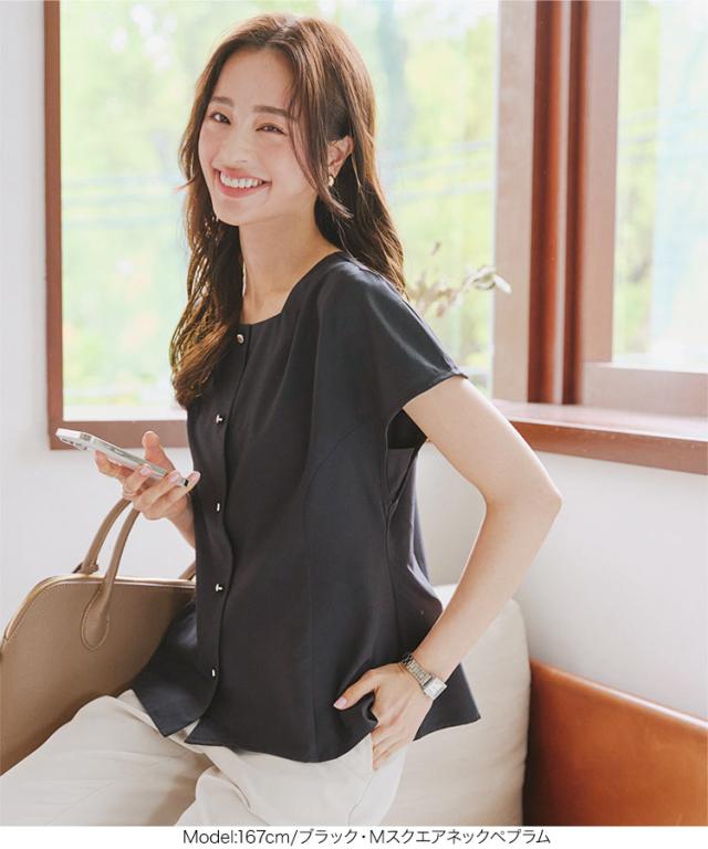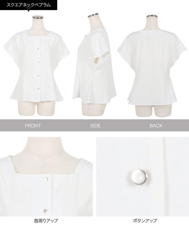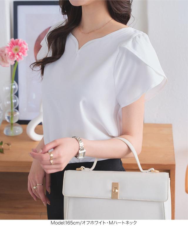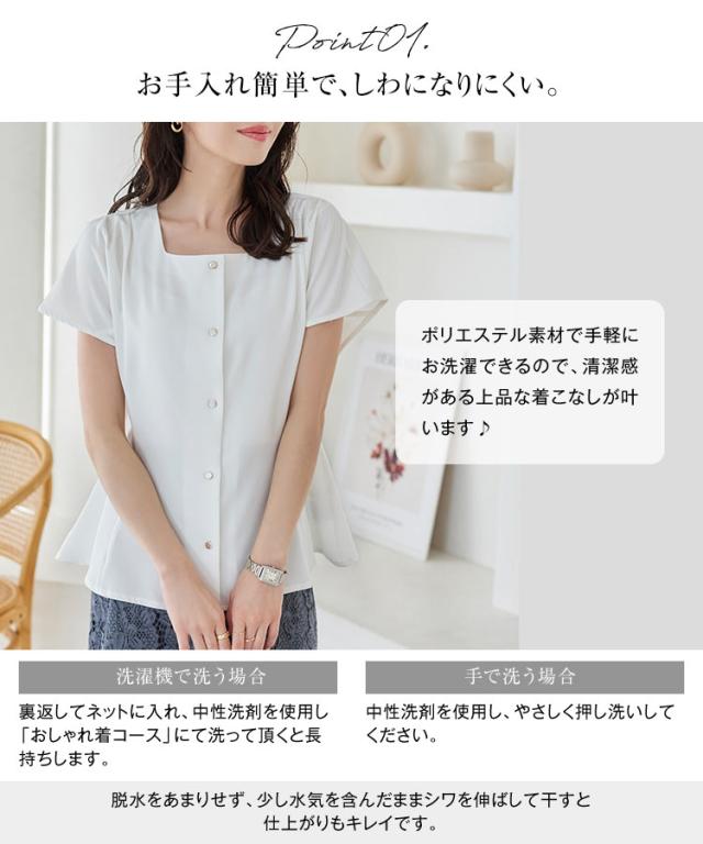 春新作 選べる5タイプ 半袖デザインブラウス C6759 入荷済 レディース シャツ オフィス 釦 ゴールド パール きれいめ エレガント Vネック スクエアネック スタンドネック スタンド スタンドカラー ギャザー タック ペプラム 夏 スーツ
