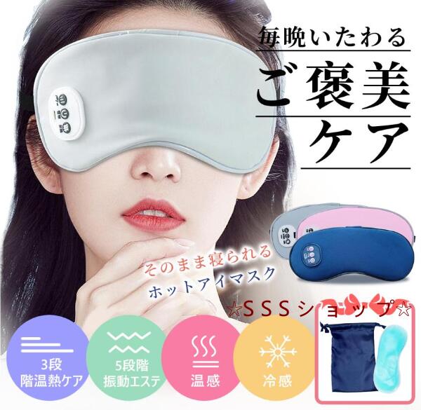 ホットアイマスク USB充電式 コードレス 目元エステ アイウォーマー 遮光 安眠 アイマッサージャー 5段階振動 3段階温熱 ジェルパッド付き