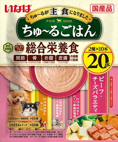 いなばペットフード【ペット用品】いなば ちゅ〜るごはん ビーフ・チーズバラエティ 20本 P-4901133793608【DS-277】