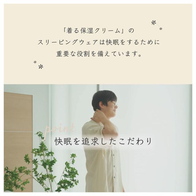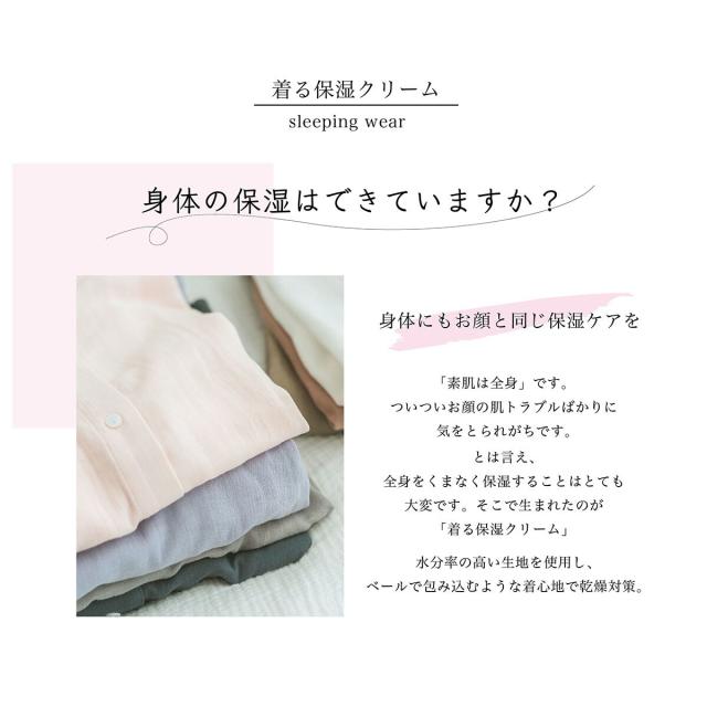 快適な睡眠環境は就寝中のエアコンなどによる乾燥から肌を守ることが大切です。 水分率の高い生地を使用し、包み込むような着心地です。