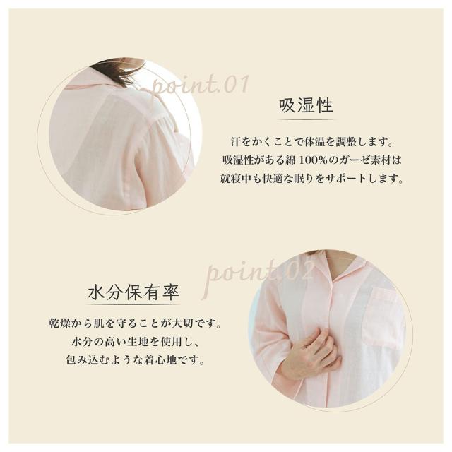 人間は就寝後、汗をかく事で体温を調整し深い眠りにつくことができます。 吸湿性がある綿100%のガーゼ素材は就寝中も快適な眠りをサポートします。