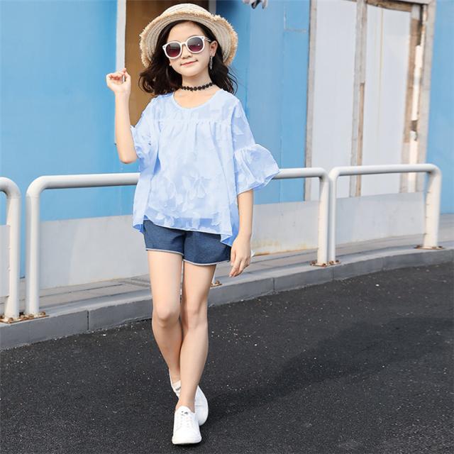 子供服 セットアップ キッズ 女の子 夏半袖 Tシャツ デニムパンツ上下2点セットおしゃれ カジュアル 可愛い 新作 110-160cm