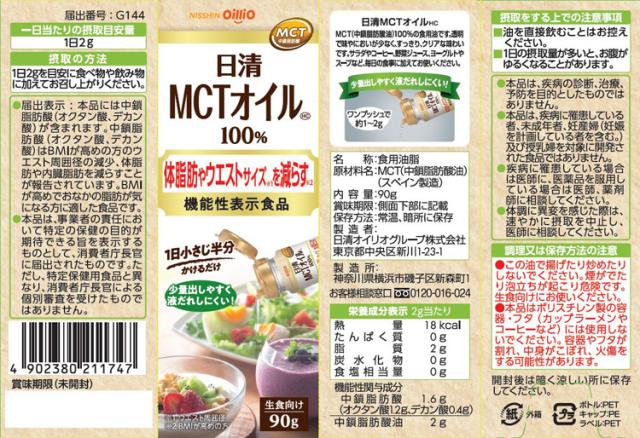 MCT(中鎖脂肪酸)100%。機能性表示食品です。