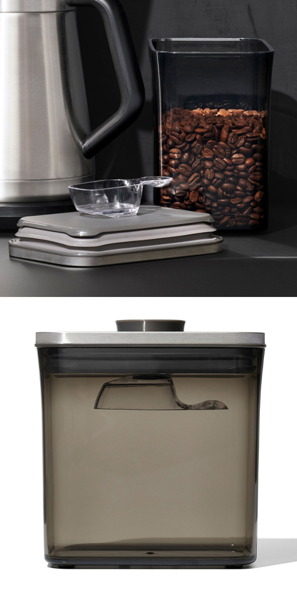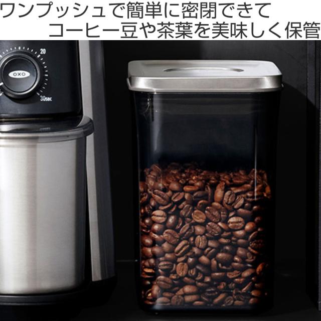 OXO 保存容器 1.6L コーヒー&ティーポップコンテナ レクタングル ショート コーヒースクープ付き ( オクソー ステンレスポップコンテナ ポップコンテナ2 ポップコンテナ ステンレス プラスチック 密閉 ワンプッシュ 食洗機対応 )