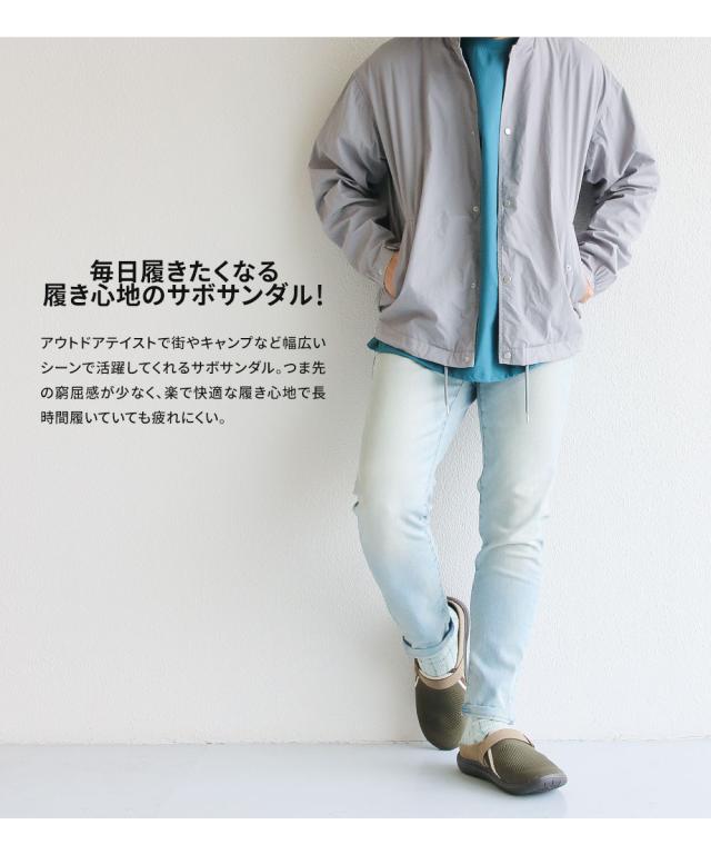 アウトドアテイストで街やキャンプなど幅広いシーンで活躍してくれるサボサンダル。