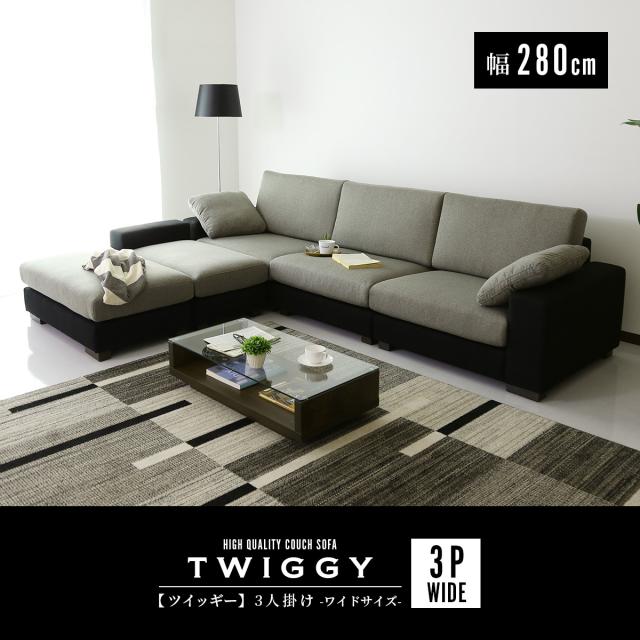 開梱設置付き ソファー ソファ 3人掛け カウチソファー L字 ローソファー ツイッギー3Pwide インテリア家具 おすすめ おしゃれ 北欧 big_ki プレゼント tm