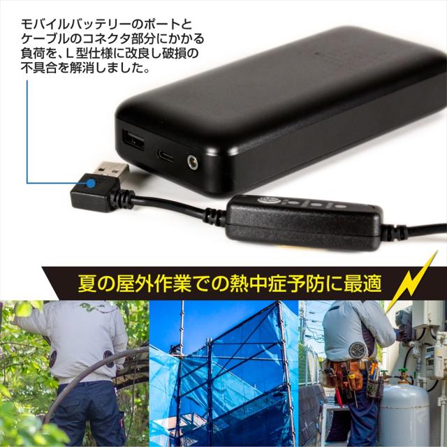 ・このアダプタにより、モバイルバッテリーをファン付き作業服のバッテリーとして使用できるようになります。