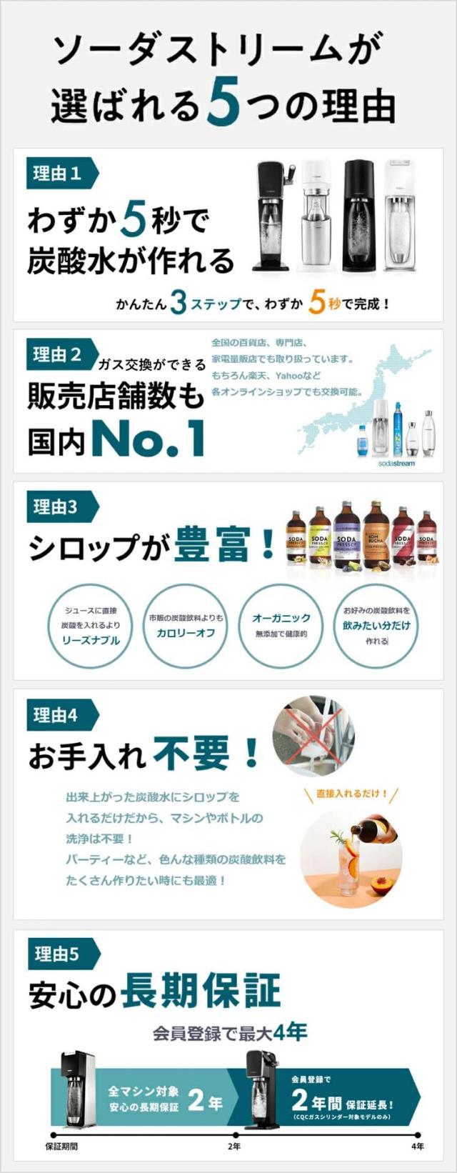 「GAIA」を購入した方で、ソーダストリームブランドサイトにて「会員登録」をしていただくと保証期間をさらに+2年間延長し、最長4年の製品保証を付帯します。