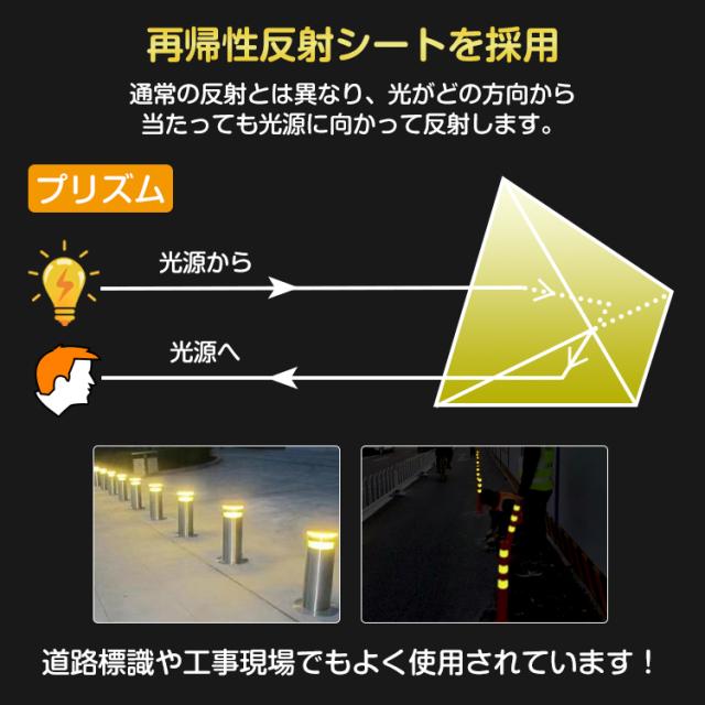 ■高輝度反射で昼も、夜もライトを反射するので交通事故防止に役立ちます。
