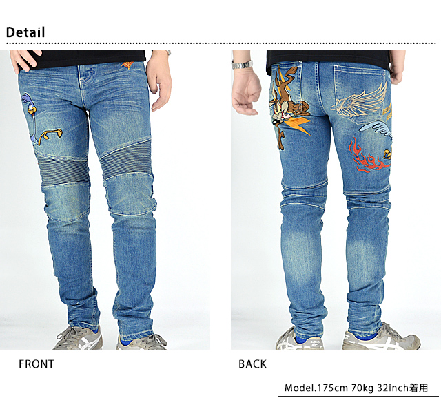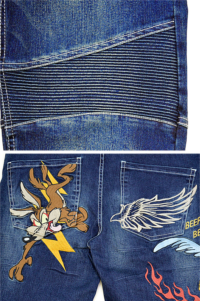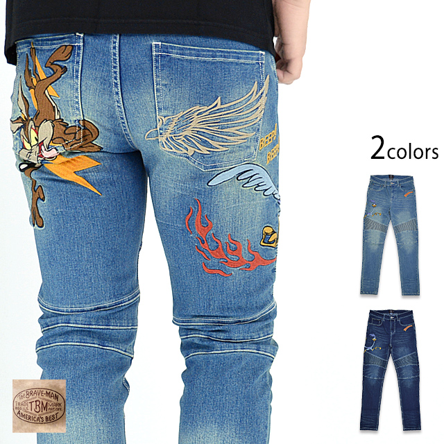 BR×LOONEYコラボ ストレッチバイカーパンツ The BRAVE-MAN LTB-2304 ブレイブマン ジーンズ ワイリー コヨーテ 刺繍