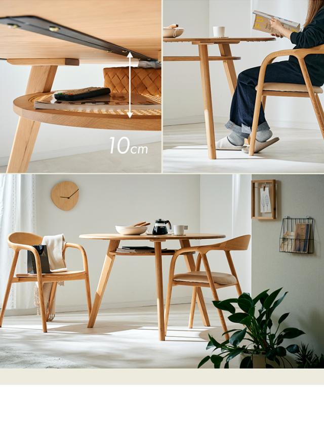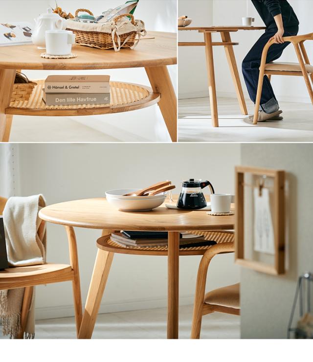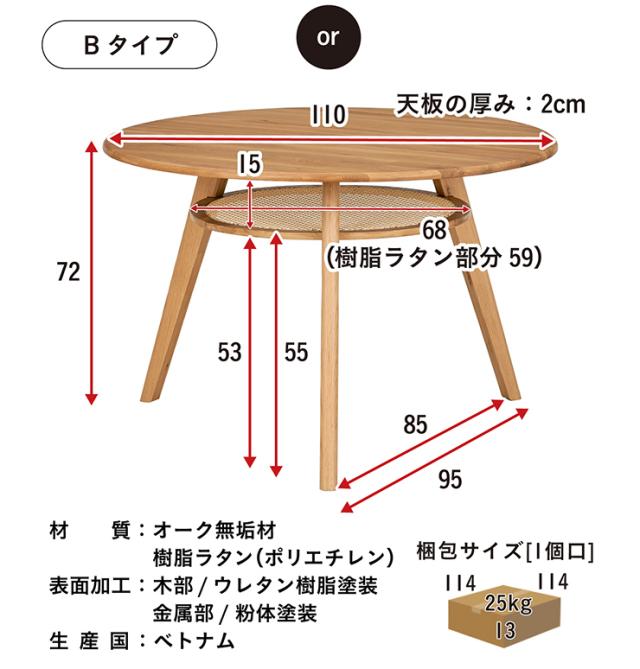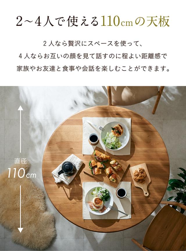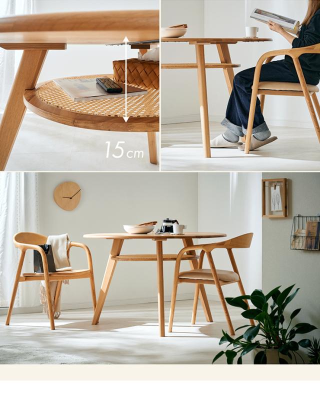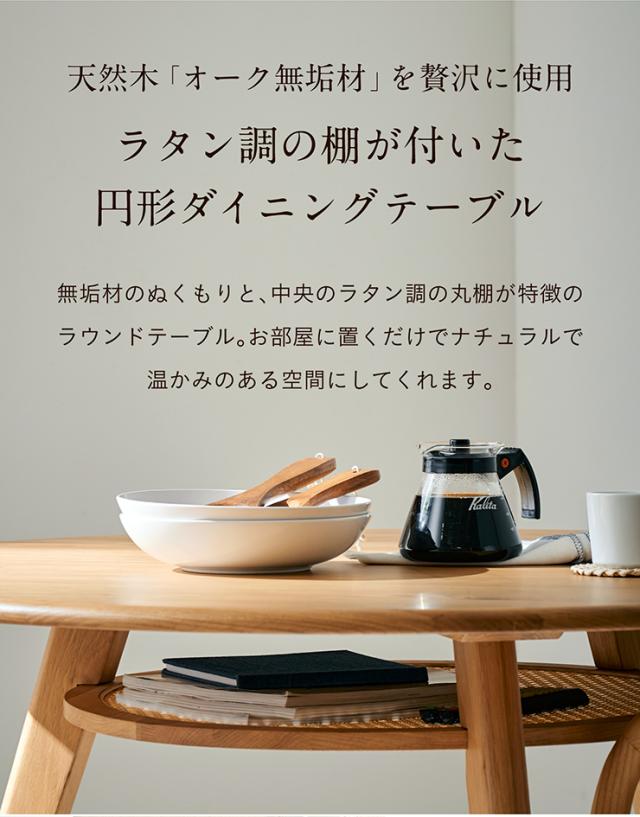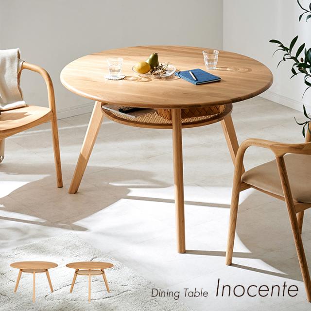 ラウンド ダイニングテーブル 幅110cm Inocente(イノセンテ) 2タイプ オーク材 ラタン調 丸テーブル 円卓 木製 円テーブル ナチュラル 2人掛け 二人掛け シンプル コンパクト リビング リビングテーブル おしゃれ