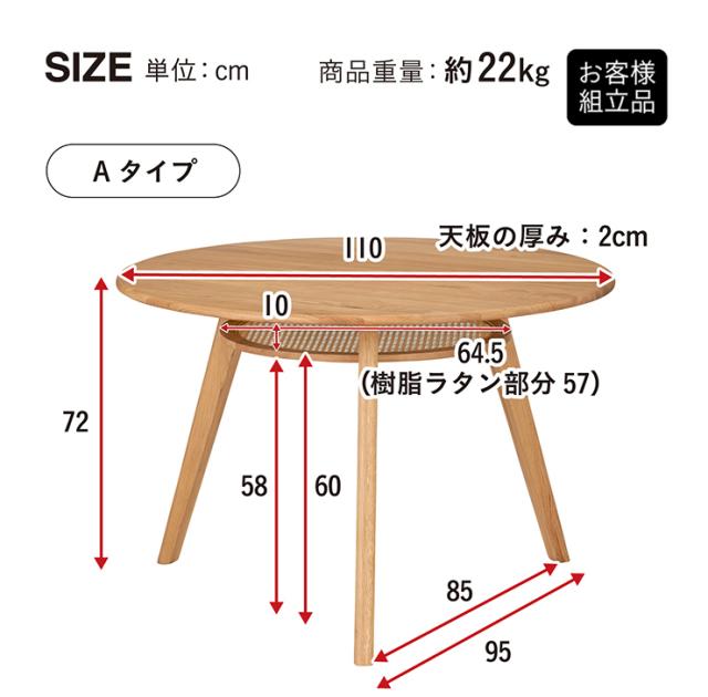本体:オーク無垢材・樹脂ラタン(ポリエチレン)