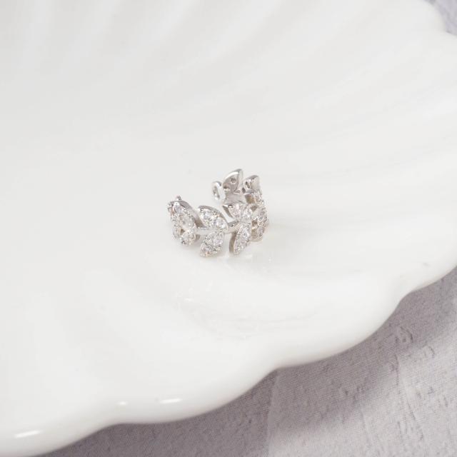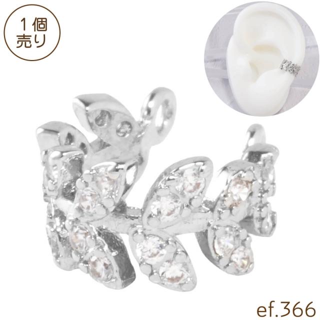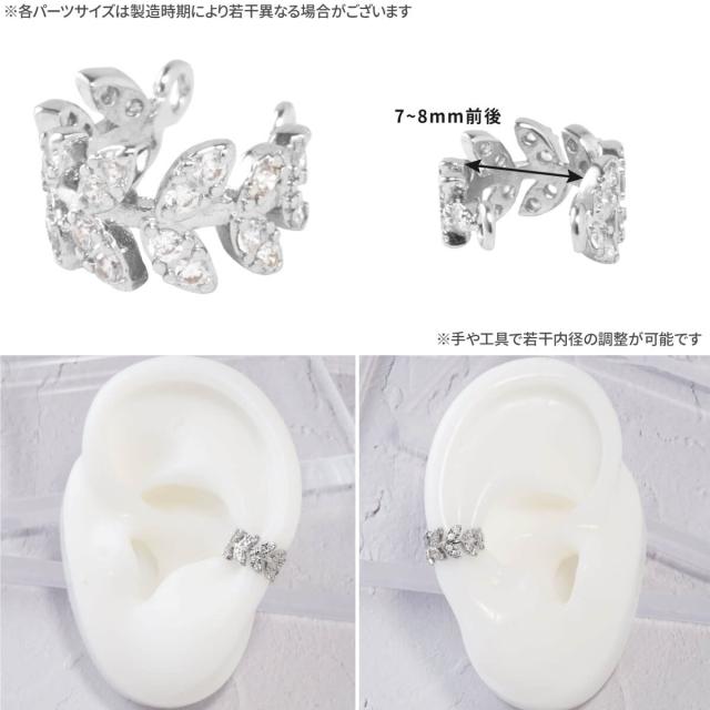 [ef.366] リーフ デザイン ビジュー イヤーカフ 合金 ジルコニア ジュエル イヤカフ イヤーカフス ノンホール 葉っぱ 葉 植物 ボタニカル パヴェ