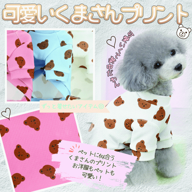 犬服 犬の服 春 夏 秋 ドッグウェア ペットウェア くま クマ柄 小型犬 かわいい おしゃれ ルームウェア