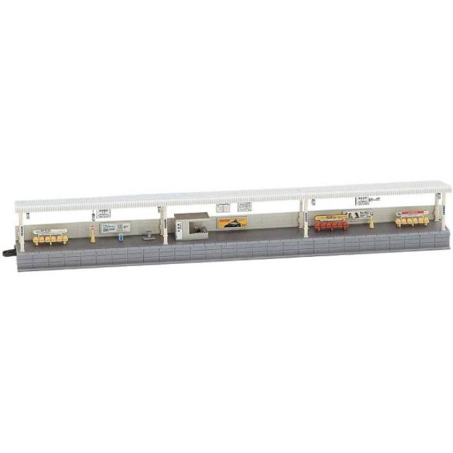 トミックス対向式ホームシリーズ。 ●一般的な対向式ホーム近代型の延長部です ●ホームの長さは、20m級車両2両分 ●時計、スピーカーなどは別パーツ構成で再現 ●駅名、広告板用のシールなど付属