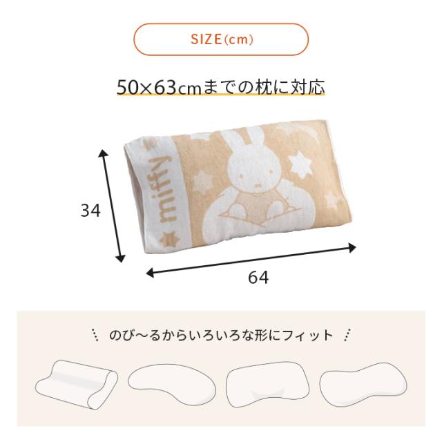 枕カバー のびのび タオル地 西川 ミッフィー まくらカバー 「 西川 のびのびタオルピローケース miffy 」 約64×34cm 抗菌 清潔 リバーシブル 綿素材 パイル生地 かわいい おしゃれ 伸縮素材 洗える 丸洗いOK 新生活