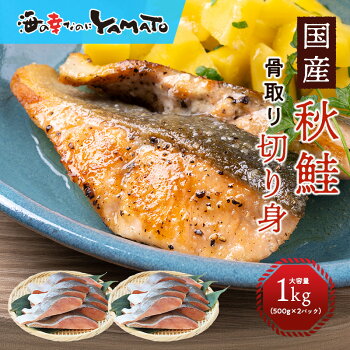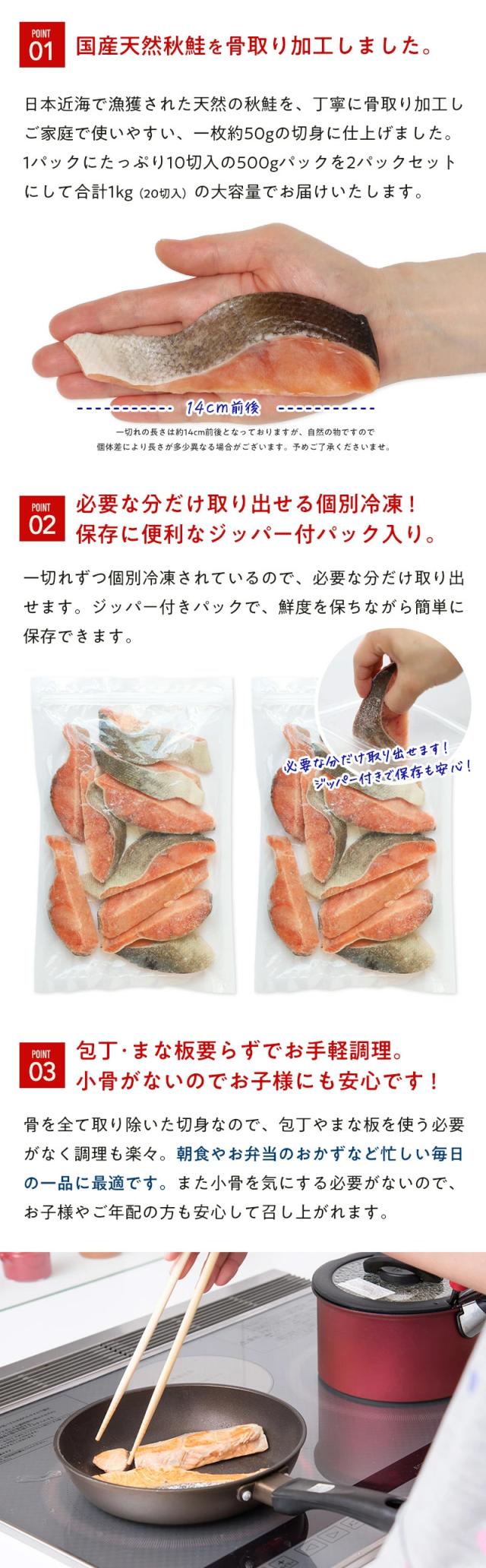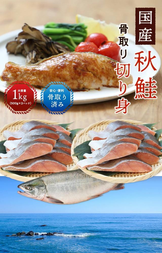 国産 秋鮭“骨取り”切身 500g×2パックセット 山盛り1kg 無縁 無添加 サケ さけ おかず お弁当 おつまみ お歳暮