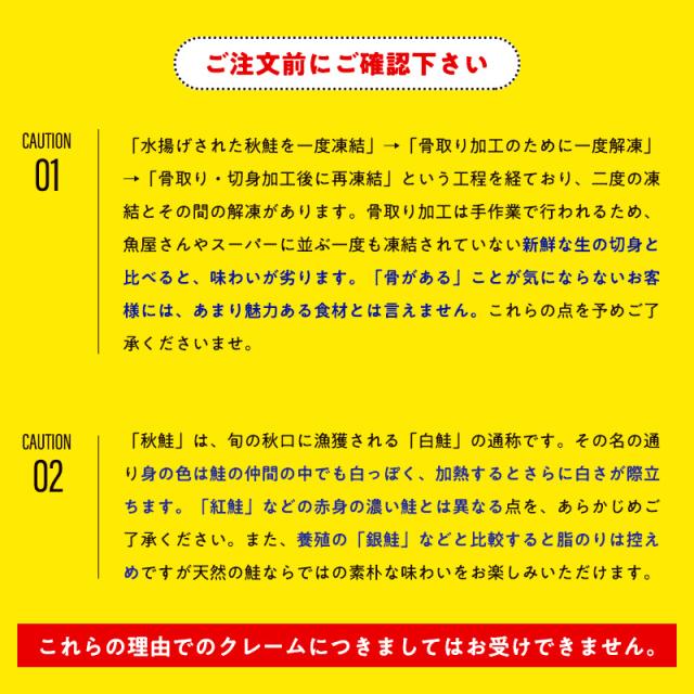 本製品は手作業で丁寧に骨を除去しておりますが、稀に残留している事もございますのでご注意ください。