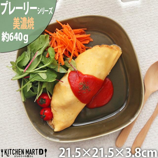 プレーリー プレート L 21.5cm 640g オリーブ 緑 グリーン お皿 パスタ皿 カレー皿 サラダ皿 食器 陶器 日本製 美濃焼 小田陶器 みずなみ焼 カフェ おしゃれ 北欧 北欧風 インスタ映え 食洗器対応 ラッピング不可