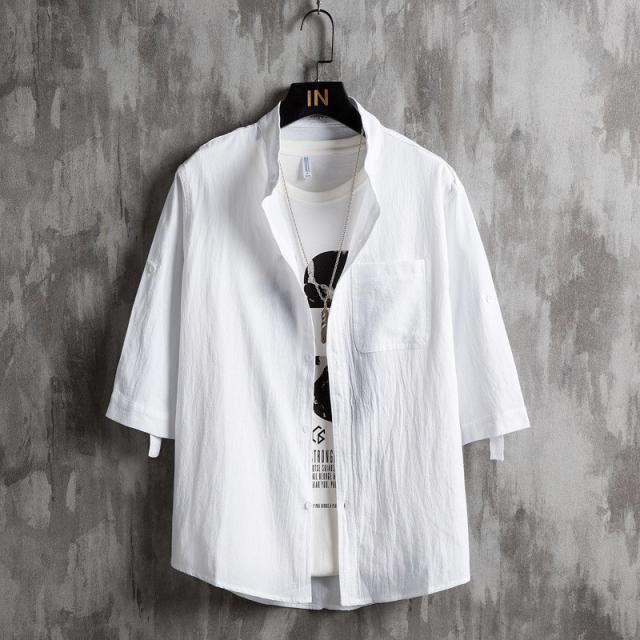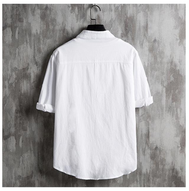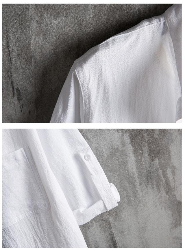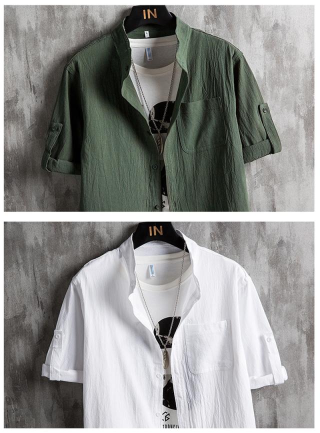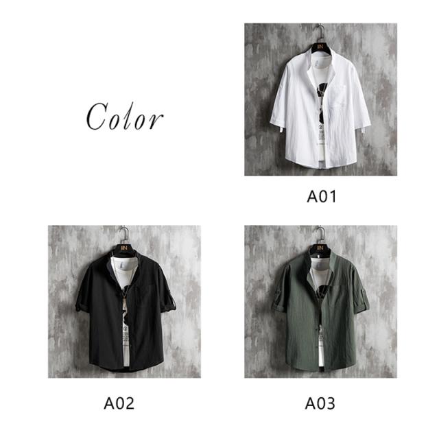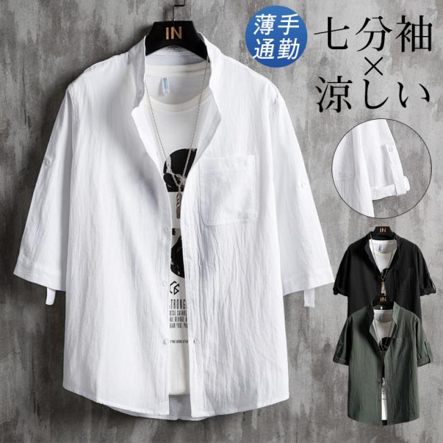 リネンシャツ メンズ 七分袖 夏服 綿麻 無地 ワイシャツ カジュアルシャツ 開襟シャツ おしゃれ ビジネス 通勤 通学 トップス
