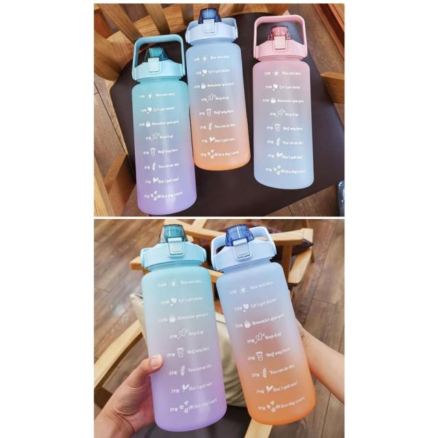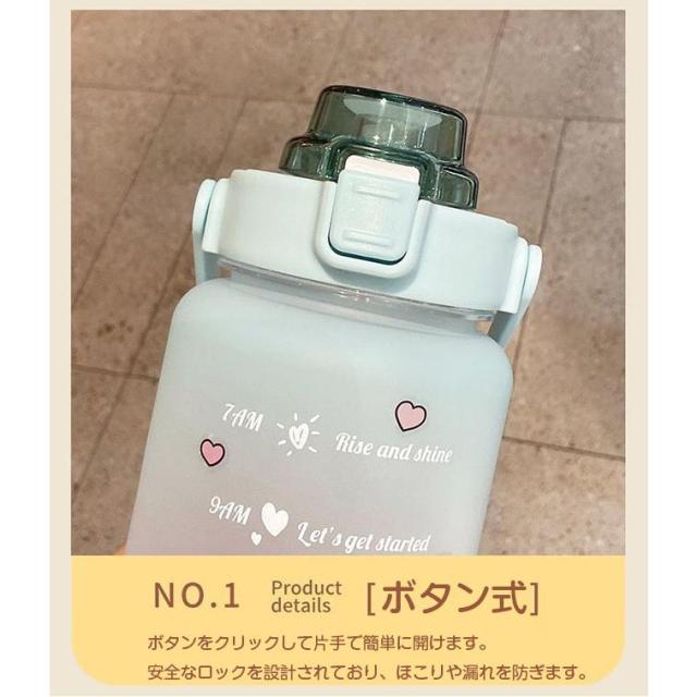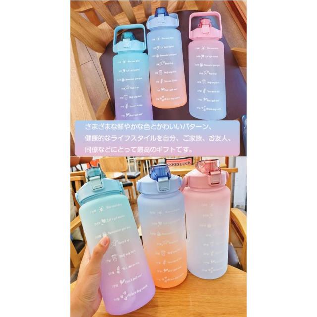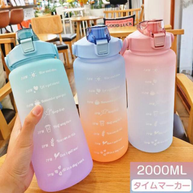 水筒 目盛り付き ウォーターボトル 2リットル タイムマーカー 携帯便利 漏れ防止 ストロー付き 子供 キッズ 目盛り 大容量 軽量 直飲み 女の子 おしゃれ 水筒 2L
