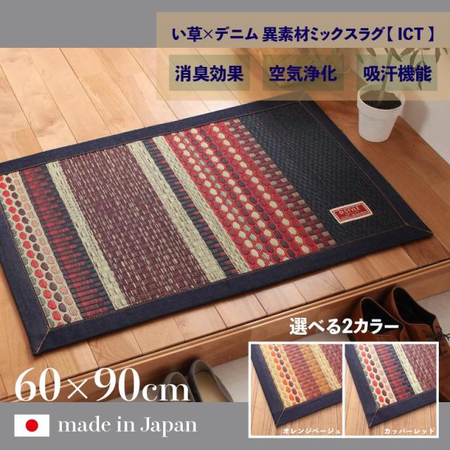 国産 い草ラグ ICT 玄関マット デニム 幅60 奥行90cm オールシーズン 床暖房対応 い草カーペット 日本製 ベッド周りマット ラグマット 軽量 傷防止 防臭 和モダン おしゃれ 和風 夏ラグマット 夏用 北欧