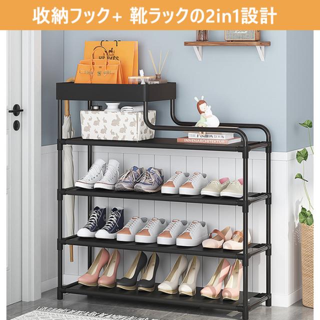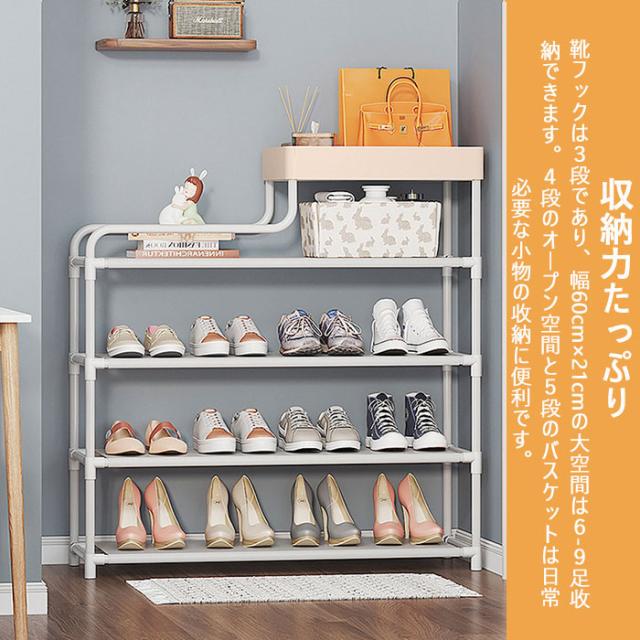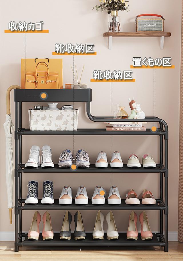 「即納」5段式 シューズボックス シューズラック下駄箱 収納カゴ付き 収納棚付きDIY 組み立て式 靴箱 靴収納フック シューズ棚 大容量収納 玄関収納 靴箱 靴収納ボックス シューズボックス おしゃれ