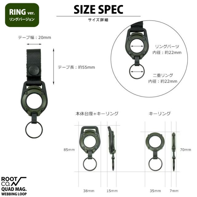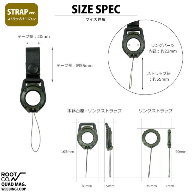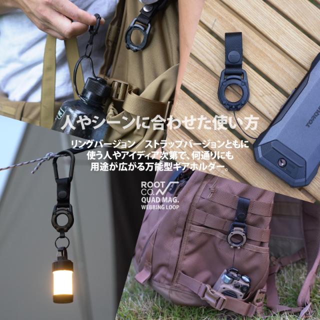 【ゆうパケット3点まで送料無料】ROOT CO. ルートコー GRAVITY QUAD MAG. WEBBING LOOP RING STRAP クアッドマグ ウェビングループ リング & ストラップ ネックストラップ キーホルダー キーリング パスケース ギアホルダー アウトドア キャンプ 登山 GQW GQWR GQWS
