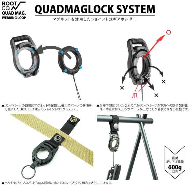 ROOT CO.オリジナル仕様のマグネットジョイント式ギアホルダー”QUAD MAG.”を採用したウェビングループ。