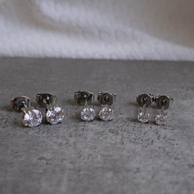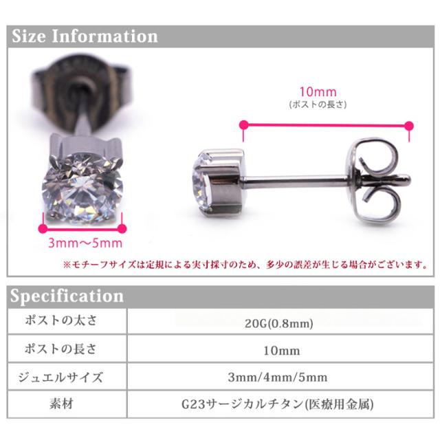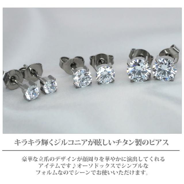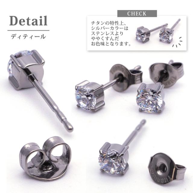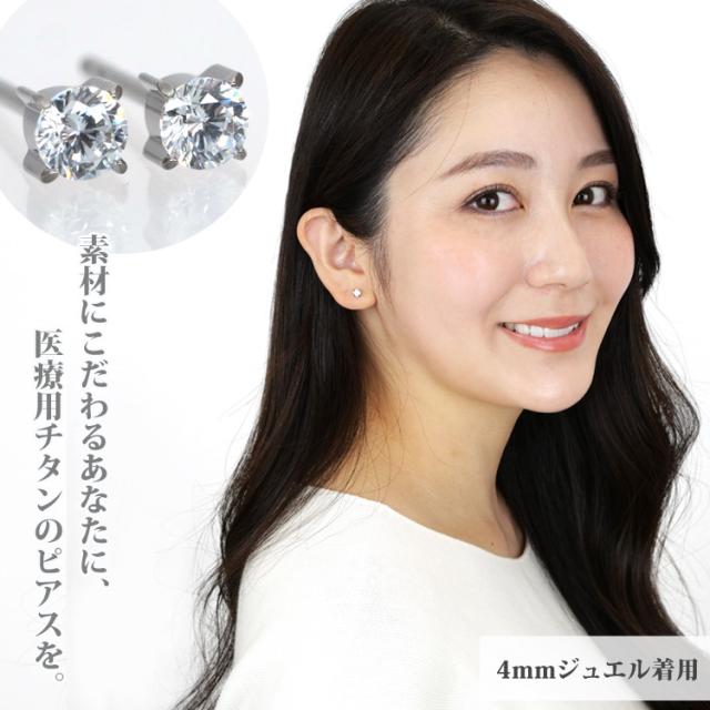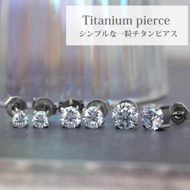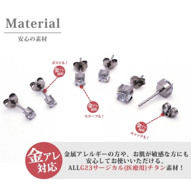 金属アレルギー対応 ステンレスピアス チタン製 一粒ジュエルピアス 立爪デザイン 両耳用 G23サージカルチタン