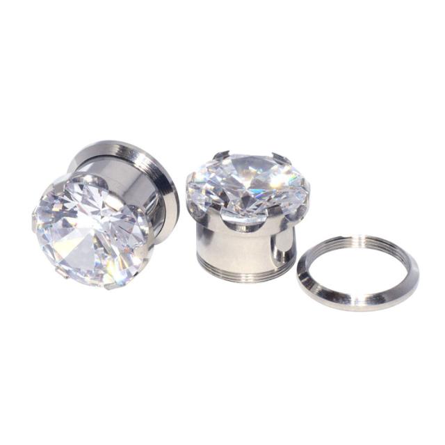メール便 送料無料 フレッシュトンネル 14mm(9/16inch) 縦爪仕様(3) BIGラインストーン アイレット サージカルステンレス316L ジュエル付【ボディピアス ロブ サーキュラ バーベル CBR キャプティブ ビーズリング BCR ボール クロージャー リング】14ミリ(9/16インチ)┃