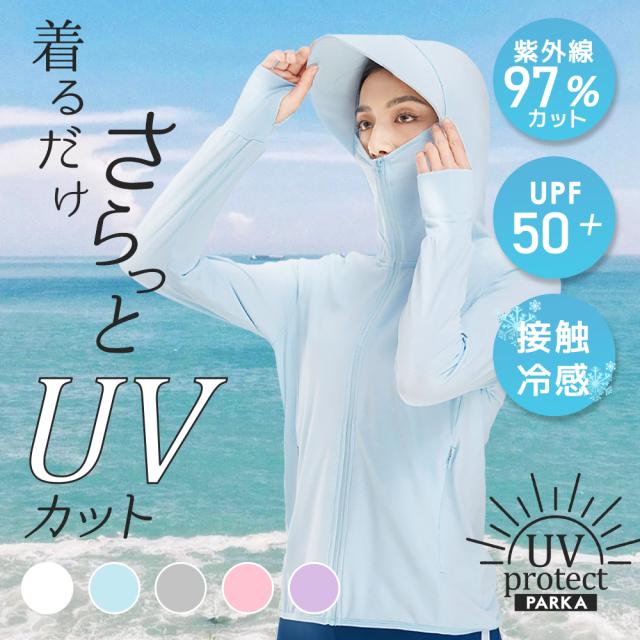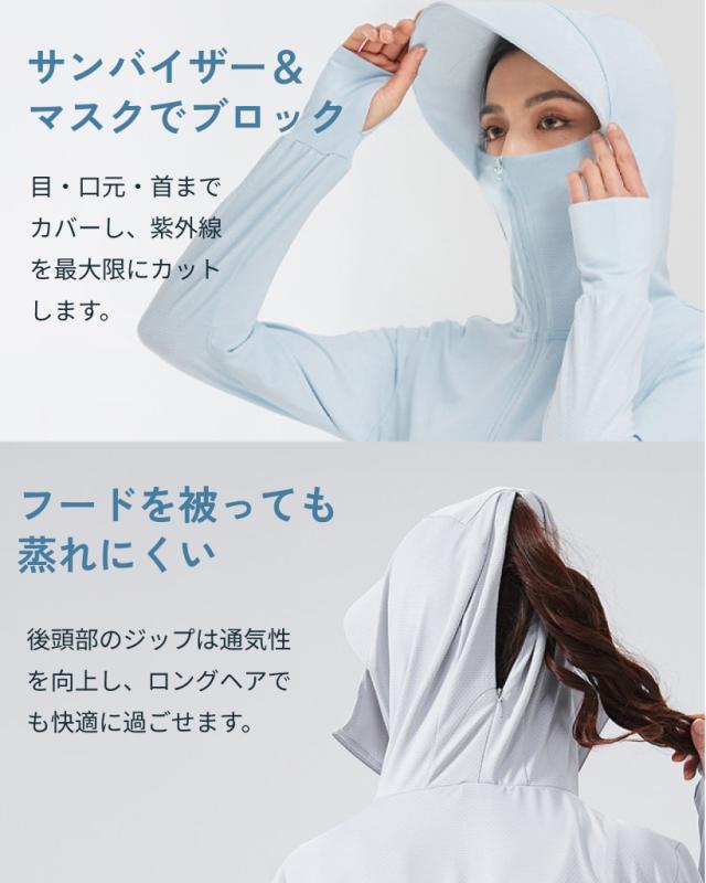 ラッシュガード UVカットパーカー |水陸両用| レディース UVパーカー 送料込み 接触冷感 アウター つば広 フェイスカバー UVカット 指穴 長袖 UPF50+ 体型カバー 冷感 日焼け止め 紫外線カット 吸水速乾 水着 プール 着たまま 顔まで 日焼け対策 日焼け防止