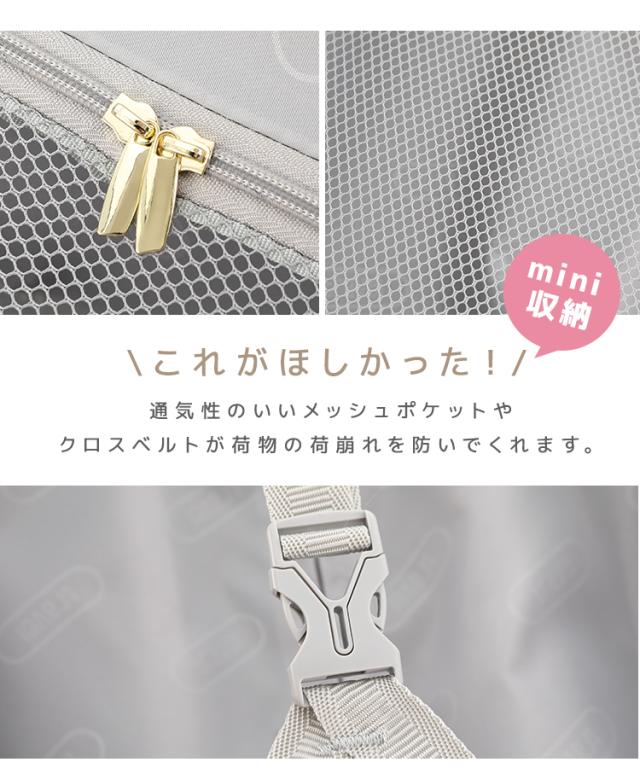 荷物の飛び出しを防ぎ、小物類の仕分けに便利なポケット付きの間仕切りを両面に備えています。