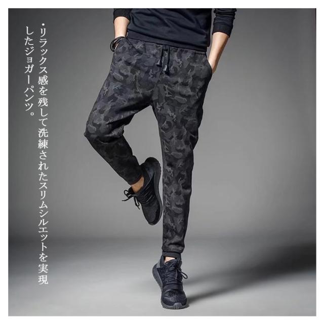 スウェットパンツ ジョガーパンツ メンズ ジャージ パンツ イージーパンツ テーパードパンツ ウェストゴム ポケット付き スキニー スリム ダンス トレーニング スポーツ カジュアル 大きいサイズ カモフラ 総柄 迷彩柄 無地 ブラック 春 夏 全2色